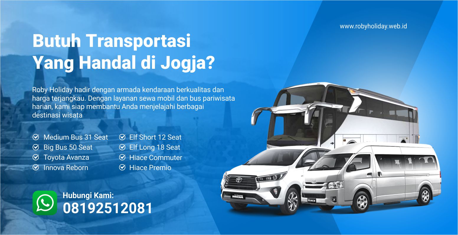 Roby Holiday siap memenuhi kebutuhan transportasi Anda di Jogja. Ingin Konsultasi Destinasi? Klik di sini.